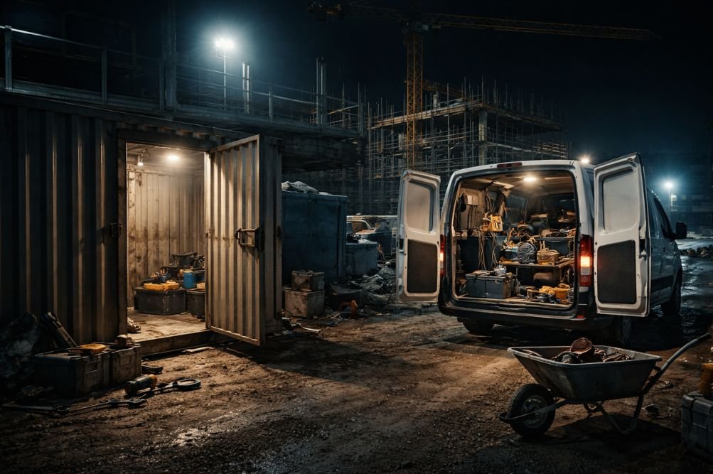 FILMSKI ROP NA GRADBIŠČU: Varnostnika z nožem onesposobili, zaklenili in odpeljali vse, kar so lahko