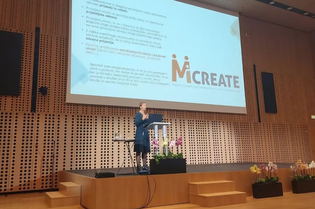 MiCREATE – Otroci priseljenci in priseljenske skupnosti v spreminjajoči se Evropi/Migrant Children and Communities in a Transforming Europe je bil štiriletni evropski projekt, financiran v okviru prestižnega programa Horizont 2020, ki se je osredotočal na integracijo otrok v tako imenovane družbe prihoda. Tradicionalno se uspešnost integracije otrok določa z vidika odraslih – strokovnjaki, politiki in znanstveniki določamo, kaj je in kaj ni uspešna integracija. Kazalci uspešne integracije so torej - če priseljeni otrok osvoji jezik okolja, hodi v šolo, je učno uspešen, napreduje v višji razred, je neproblematičen in se zaposli. Seveda je vse navedeno res, je pa integracija mnogo več. 'Otrokosrediščni pristop' postavi otroka, njegove izkušnje in mnenja v središče raziskave in političnih priporočil. Skladno s tem je za uspešno integracijo nujen občutek pripadnosti, občutek biti sprejet, imeti lokalne prijatelje in občutek, da je sprejeta tudi tvoja družina in etnična skupnost. Projekt MiCREATE je izpostavil pomembno dejstvo in sicer, da je integracija lahko dolgoročno uspešna le, če je skladna tudi z videnji in izkušnjami priseljenih otrok. Uspešna dvosmerna integracija pa je pomembna, da se izognemo getoizaciji, marginalizaciji, potencialnim ekstremizmom in zato, da se vzpostavi družbo sobivanja, v kateri bo življenje prijetno za nas vse. Integracija je dvosmeren proces v katerem priseljenci osvajajo jezik in kulturo družbe gostiteljice, lokalna skupnost pa spodbuja in omogoča to vključevanja, obenem pa se tudi sama spreminja, postaja vključujoča.