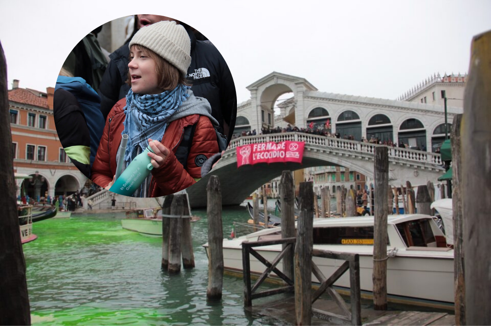 Podnebni aktivisti iz gibanja Extinction Rebellion so konec minulega tedna v Benetkah izvedli protestno akcijo, med katero so obarvali vodo ob Velikem kanalu v zeleno barvo. V akciji je sodelovala tudi švedska aktivistka Greta Thunberg. Posredovala je policija, ki je Thunberg in drugim aktivistom za 48 ur prepovedala vstop v Benetke.