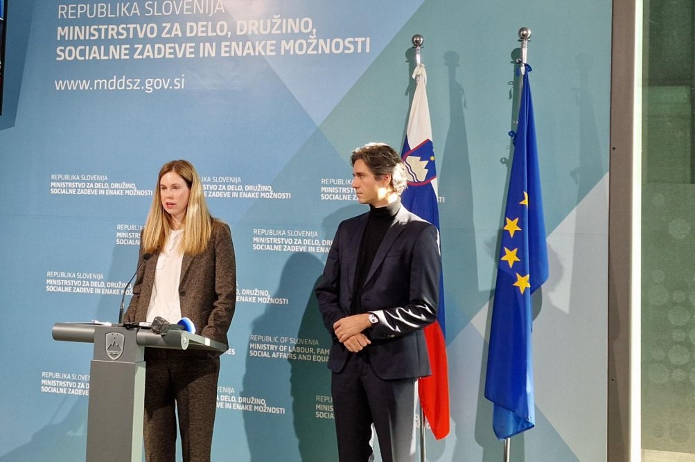 Glavna inšpektorica Inšpektorata RS za delo Katja Čoh Kragolnik (na fotografiji levo) in resorni minister Luka Mesec.