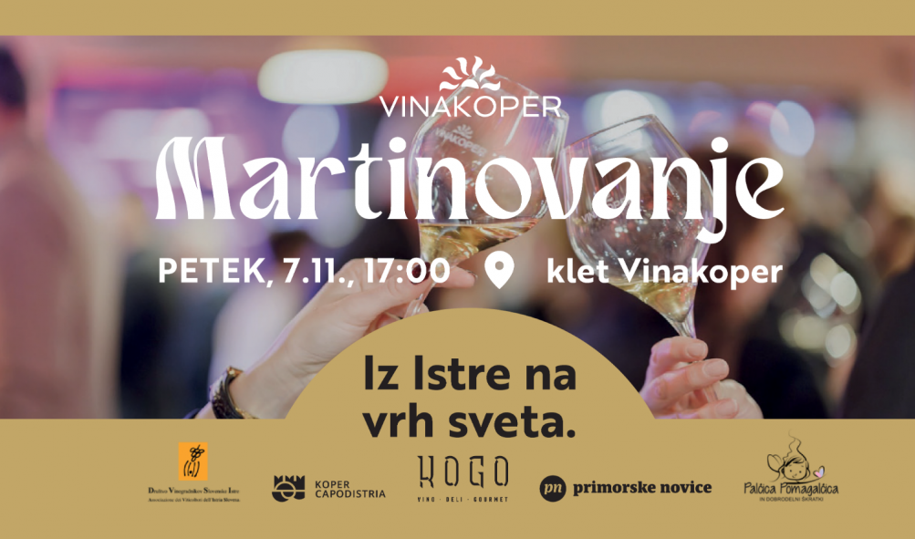 Martinovanje pri Vinakoper, ki se prepleta tudi s praznovanjem martinovega v Mestni občini Koper, bo praznik vin, ljudi in istrskih zgodb. Ob vinih Vinakoper bo kozarce, kot veleva tradicija, polnilo še 16 gostujoči vinarjev slovenske Istre, glasbeni ritem dogajanju pa bodo dajali Kranjci z Aneo Mlinar.