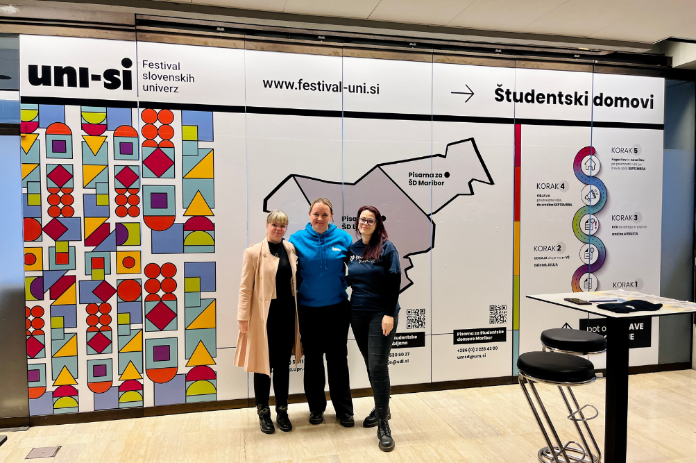 Sodelovalni koncept vseh univerz je omogočil tudi enoten nastop vseh treh pisarn študentskih domov (Maribor, Ljubljana, Koper), saj nameščanje na subvencionirana ležišča poteka na nacionalni ravni na celotnem postopku – do same namestitve, ki poteka skladno z domskimi pravili. Pisarne so postopke predstavile tudi na obfestivalskem dogajanju, kjer so bili predstavljeni tudi drugi nekoliko bolj uradni, a nujni postopki, kot sta prijava in vpis. Ob tem so potekale še delavnice in predavanja za boljše študijsko in obštudijsko življenje.