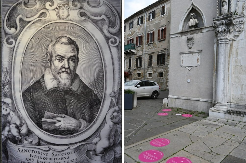 Santorio, sodobnik Galilea Galileja, velja za pionirja uvajanja kvantitativnih metod v medicino. Njegova zapuščina je v mestu predstavljena skozi ulično razstavo, ki s kratkimi besedili in značilnimi magenta pikami obiskovalce vodi po koprskih ulicah.