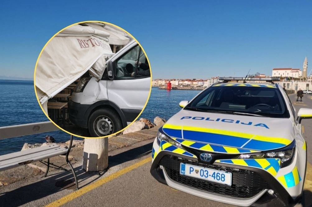 NI SE IZŠLO: V Piranu pijani voznik s kombijem trčil v tendo lokala