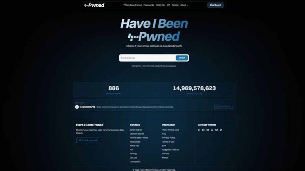Gre za brezplačno spletno orodje, ki ga vodi Hunt. Stran omogoča, da preverite, ali je bil vaš e-poštni naslov ali geslo razkrito v katerem od znanih vdorov. Če se pojavi na seznamu, takoj spremenite geslo.