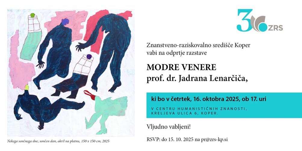 Znanstveno-raziskovalno središče (ZRS) Koper vabi na odprtje razstave 'Modre Venere' prof. dr. Jadrana Lenarčiča, ki bo v četrtek, 16. oktobra, ob 17. uri v Centru humanističnih znanosti na Kreljevi ulici 6 v Kopru.