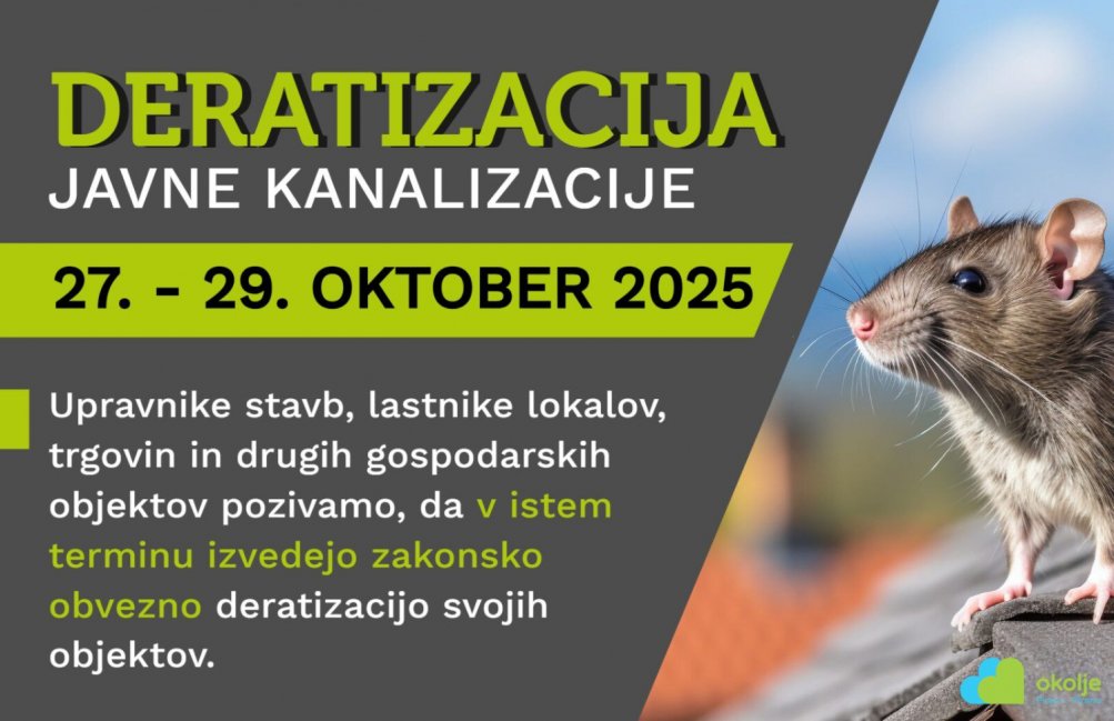Tretje letošnje preventivno zatiranje glodavcev z obešanjem parafinskih vab na pokrove kanalizacijskih jaškov bo potekalo od ponedeljka, 27. 10. do srede, 29. 10. 2025.