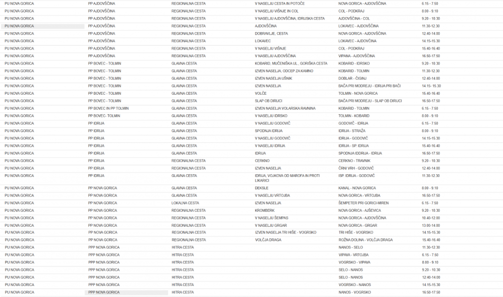 Lokacije merjenja hitrosti na območju Policijske uprave (PU) Nova Gorica