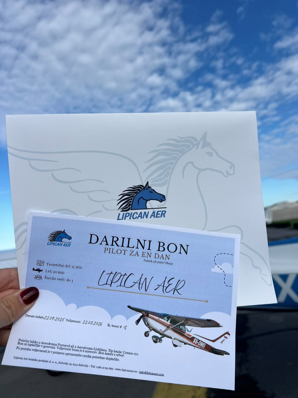 Ste si kdaj želeli prevzeti krmilo pravega letala in doživeti pogled na svet z višine? Podjetje Lipican Aer vam ponuja edinstveno priložnost. Izkušnjo Pilot za en dan lahko podarite sebi ali svojim najbližjim kot posebno darilo.