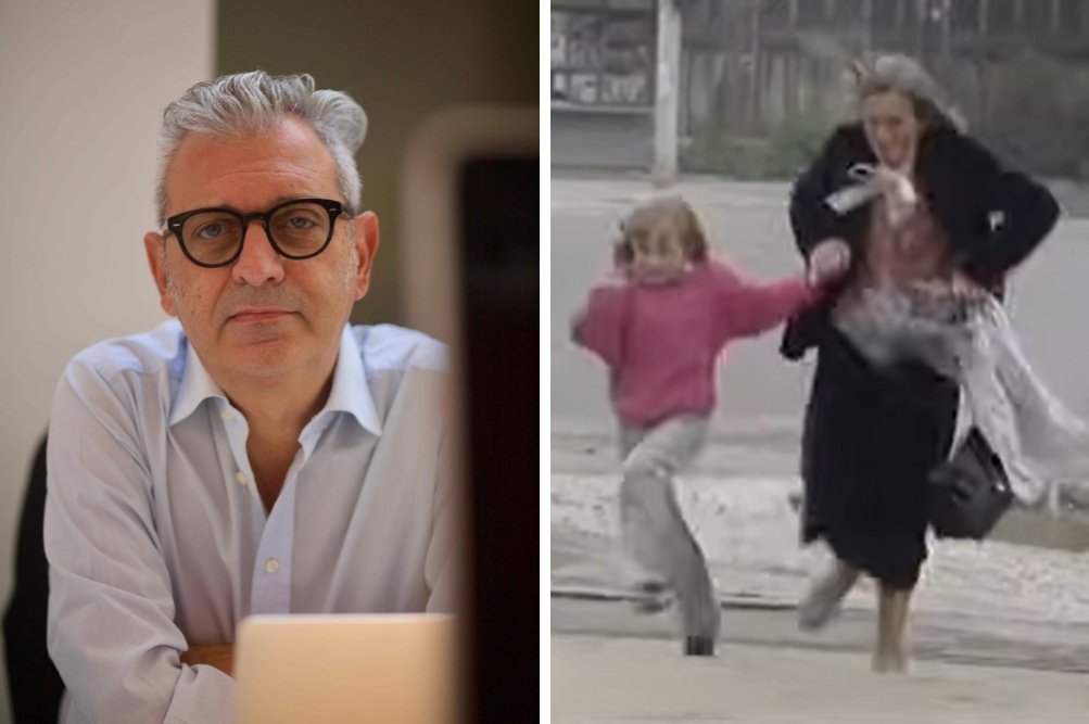 Novinar Ezio Gavazzeni je po ogledu dokumentarnega filma Sarajevo safari začel raziskovati. Po dveh letih je vložil prijavo skupaj z vsemi dokazi, ki jih je zbral, prejšnji mesec pa je milansko tožilstvo začelo uradno preiskavo (na fotografiji levo). Na fotografiji desno je trenutek iz dokumentarca Sarajevo safari, ko mati z otrokom beži skozi mesto, medtem ko se slišijo streli.