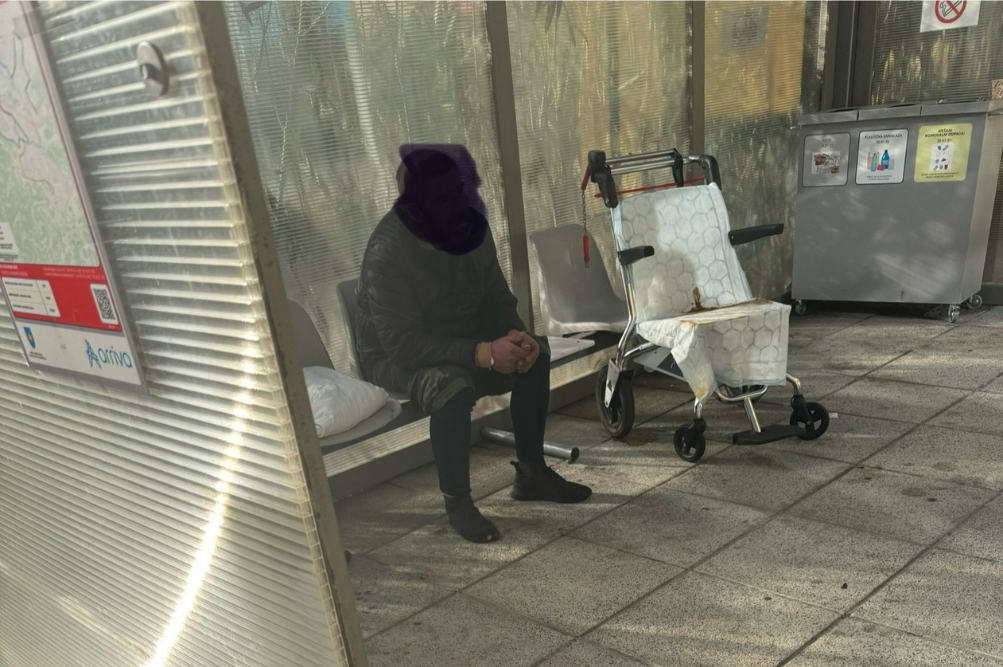 Fotografija brezdomca, ki naj bi bil odpuščen iz izolske bolnišnice.
