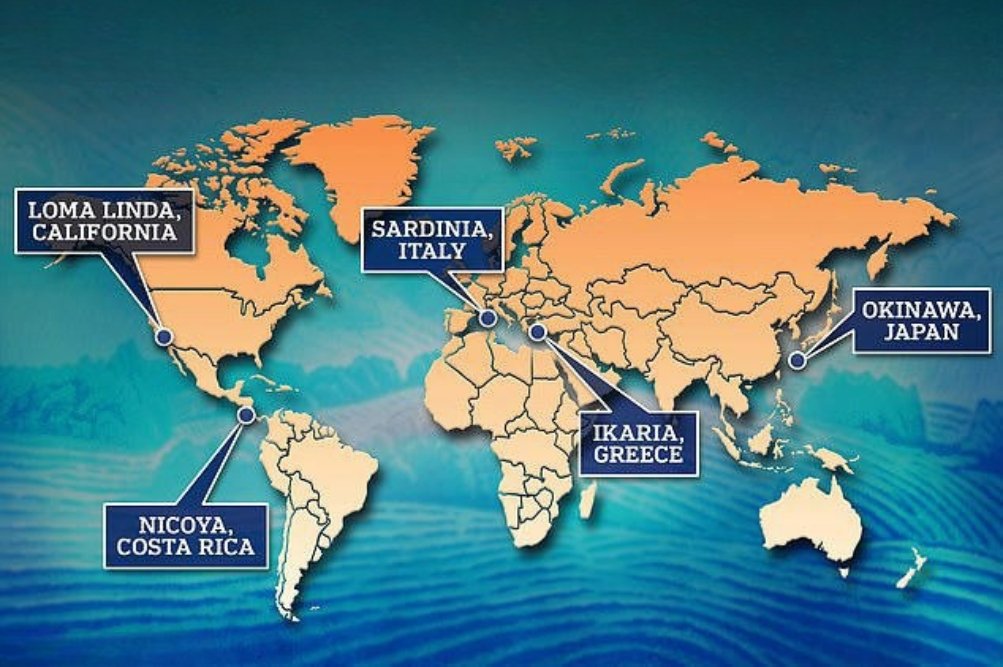 Po svetu vse več ljudi išče 'modre cone', območja, kjer prebivalci v povprečju živijo dlje in pogosto presežejo starost 100 let. Trenutno je uradno priznanih pet takšnih regij: Ikaria v Grčiji, Okinawa na Japonskem, Ogliastra na Sardiniji v Italiji, Nicoya v Kostariki in Loma Linda v Kaliforniji. Te skupnosti povezuje zdrav način prehranjevanja, aktiven življenjski slog, malo stresa ter tesne medgeneracijske vezi.