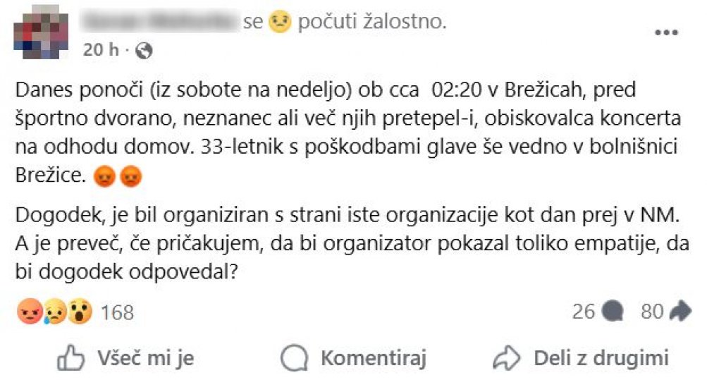 ŠE EN NAPAD LE 24 UR PO ZLOČINU V NOVEM MESTU: V Brežicah nastradal 33-letnik, jutri shod pred občino