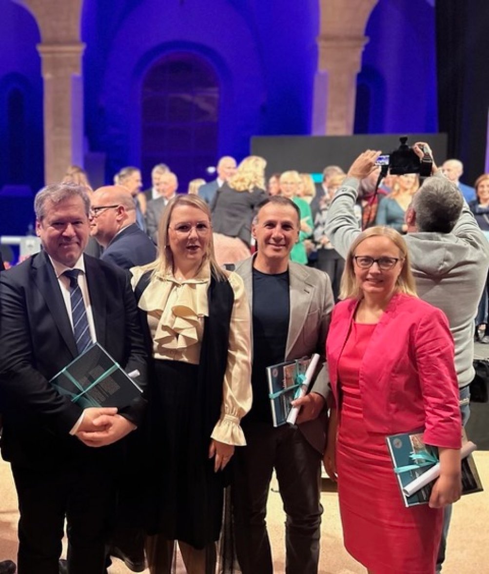 Minister za visoko šolstvo, znanost in inovacije Igor Papič, ministrica za kmetijstvo, gozdarstvo in prehrano Mateja Čalušić, poslanca Robert Janev in Tamara Kozlovič (od leve proti desni)