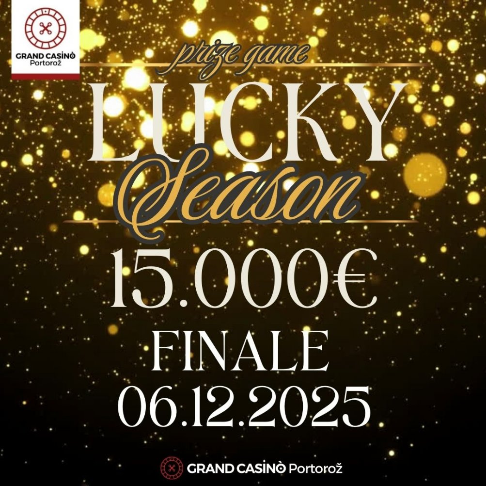 Ko se decembrski mraz spusti nad obalo in se Portorož ovije v praznične luči, tudi v Grand Casinoju Portorož oživi tisti poseben utrip, ki ga prinese konec leta. Tokrat vstopamo v praznični čas še posebej slovesno, saj bo že to soboto, 6. decembra 2025, casino praznoval rojstni dan. Celoten večer bo prežet s prazničnim vzdušjem, pričakovanjem in vrhuncem nagradne igre Lucky Season, ki se bo na ta dan zaključila. Skupni nagradni sklad znaša 15.000 evrov, zato bo večer za mnoge še posebej razburljiv.