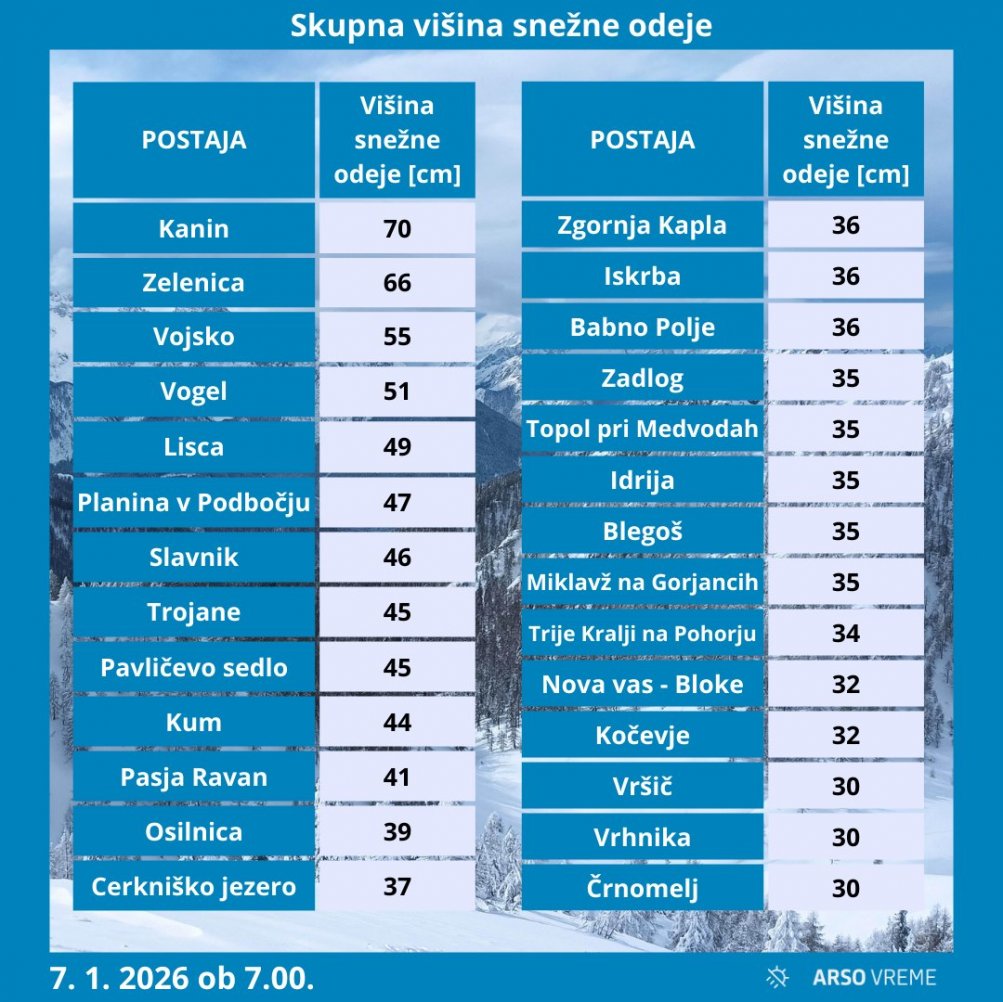 Kot zanimivost je izpostavil, da je najmanj snega v alpskih dolinah, le okoli pet do 10 centimetrov, na območju Julijskih Alp, v Kamniško-Savinjskih Alpah pa okoli 20 centimetrov. Snežna odeja je po njegovih besedah tokrat res precej debela, sploh po nižinah.