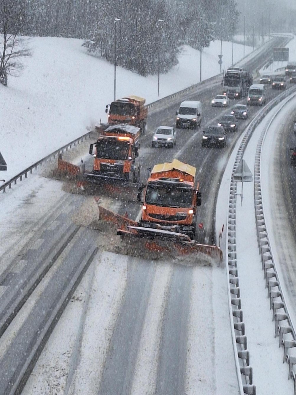 Sneg, ki je pobelil večji del države, težave povzroča predvsem v prometu. Razmere so zaradi burje otežene zlasti med Postojno in Senožečami. Med Ljubljano in Vrhniko izločajo tovorna vozila. Iz Ljubljane proti Kopru je približno 45 minut zamude, v obratni smeri pa približno 30 minut. Zaradi zdrsov tovornih vozil je na primorski avtocesti zaprt vozni pas med Nanosom in Senožečami proti Kopru.