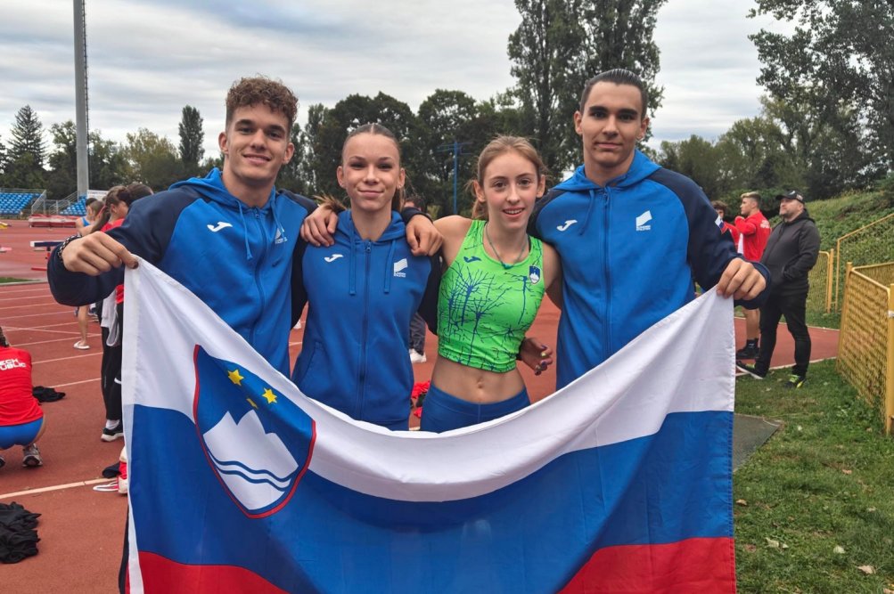 Na fotografiji državni rekord štafeta 4x300m (od leve) Patrick Novak, Živa Remic, Iva Škrabar Dizdarevič in Jakob Šramel.