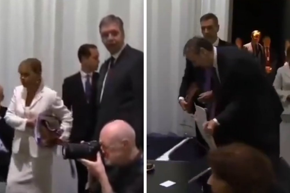 Posnetek dogodka je objavil Borko Stefanović, srbski pravnik in diplomat. "Stalna blamaža in neverjeten spodrsljaj našega protokola. Ni niti smešno, ker oni vodijo in uničujejo Srbijo že 13 let," je zapisal na X.