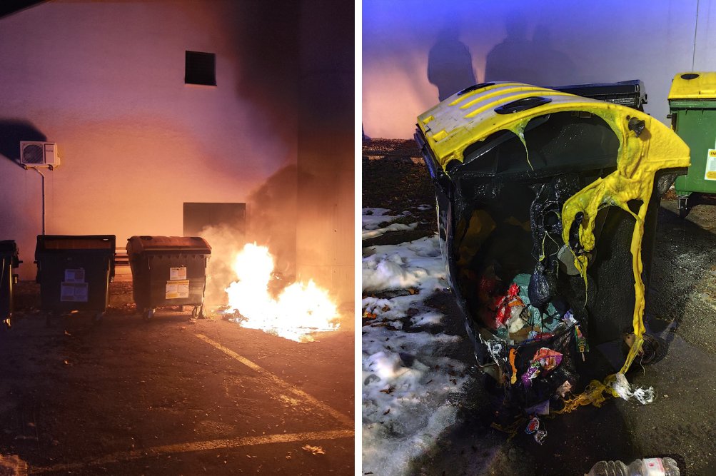 Požar zabojnikov v Pivki. Foto: Facebook PGD Pivka